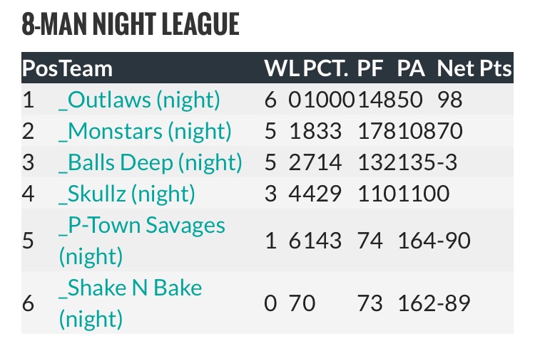 2025 FALL STANDINGS