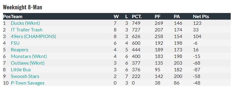 2025 FALL STANDINGS